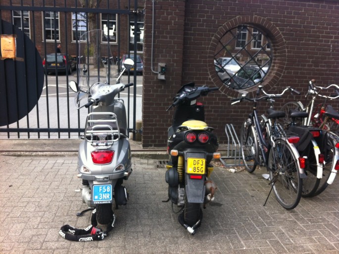 Om het parkeerterrein te verlaten dien je op de groene knop te drukken aan de rechter zijde van het hekwerk. Plaats geen fietsen of brommers voor deze knop.